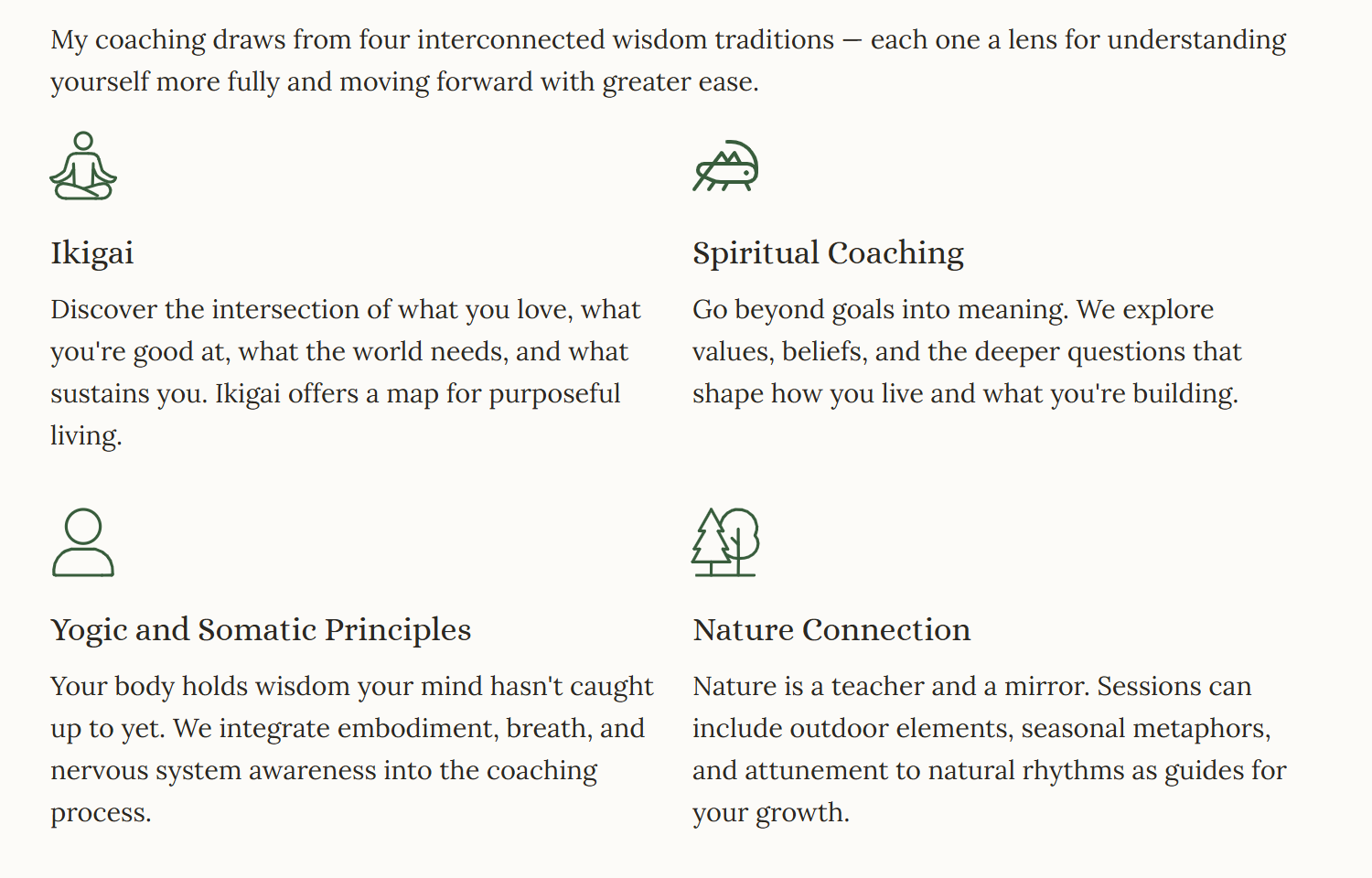 We consolidate your insights, strengthen your practices, and design a way forward that you can carry on your own — with or without continued coaching.